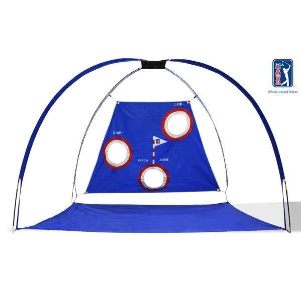 Easy to assemble and fold down, it includes a carry bag for convenient storage, plus a tough turf hitting mat to protect your lawn. Complete with a PGA TOUR training DVD, this all-in-one golf practice net is ideal for golfers of every level looking to improve their game from the comfort of home.